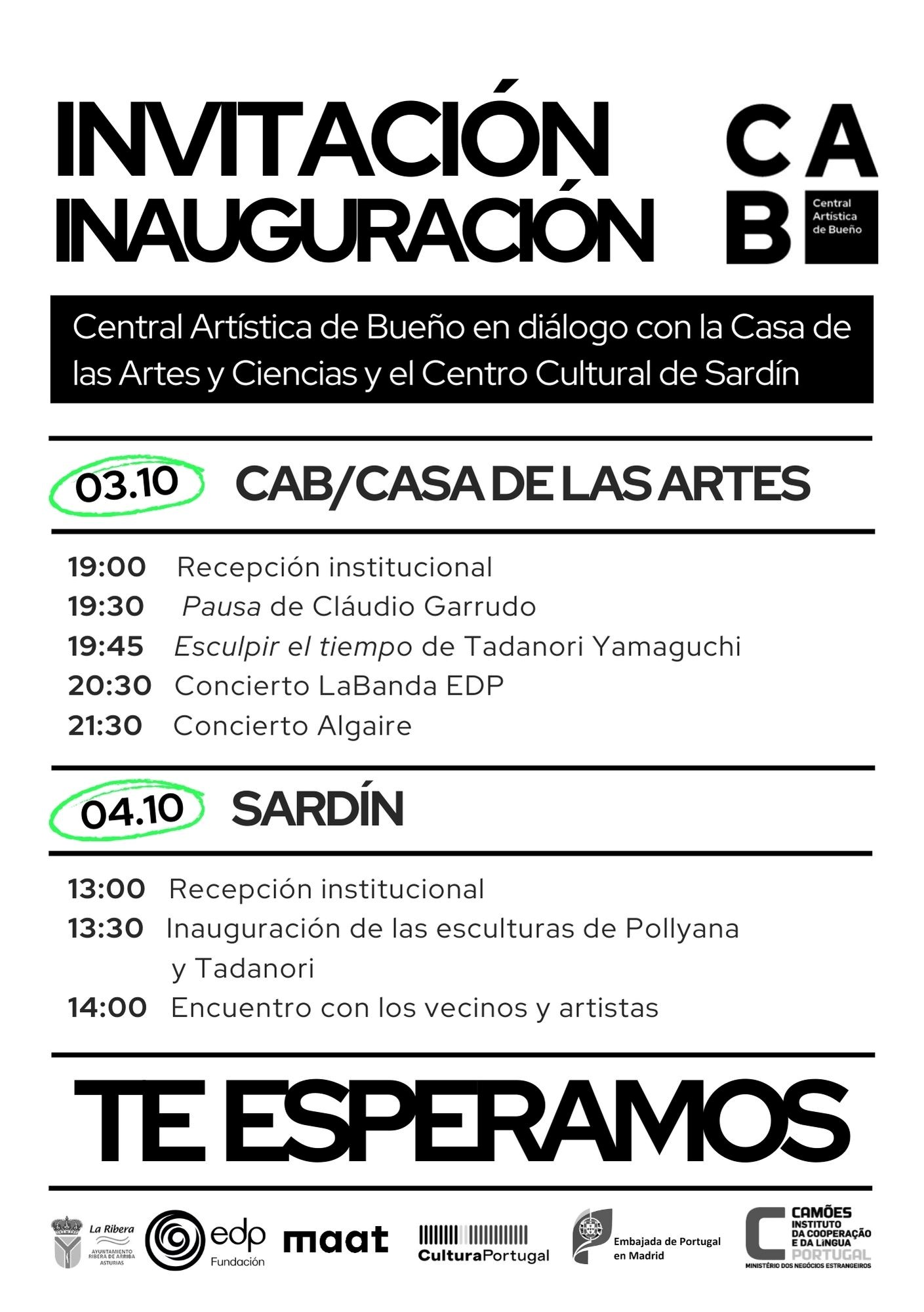 La Central Artística de Bueño -CAB- en diálogo con La Casa de las Artes y las Ciencias de Bueño y en esta ocasión con el Centro Cultural de Sardín, os invitan a la inauguración de dos nuevas exposiciones que ocuparán estos espacios los próximos meses.